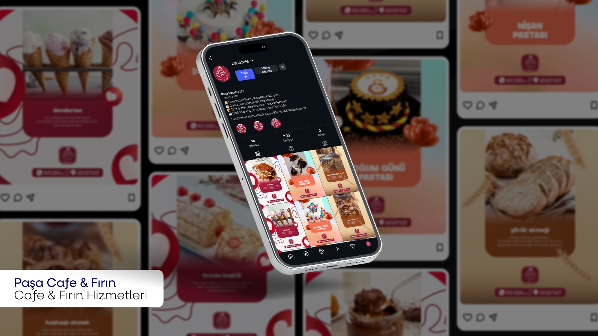 Paşa Cafe için yürüttüğümüz sosyal medya yönetimi süreci, markanın ürün kalitesini, vitrin gücünü ve günlük tazelik anlayışını dijital dünyada doğru bir görsel ve dil bütünlüğüyle yansıtmayı hedefledi. İçerik planlamasında özellikle ekmek çeşitleri, özel gün pastaları, tatlı ürün grupları ve günlük üretim süreci ön plana çıkarılarak; iştah açan, güven veren ve düzenli bir marka algısı oluşturuldu. Fotoğraf, video ve grafik tasarımlar; Paşa Cafe’nin sıcak, samimi ama aynı zamanda profesyonel duruşunu destekleyecek şekilde kurgulandı.